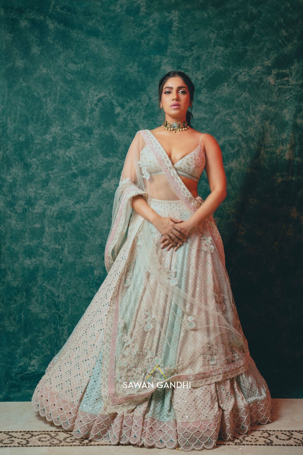 Bhumi Pednekar in Multitone chikenkari lehenga