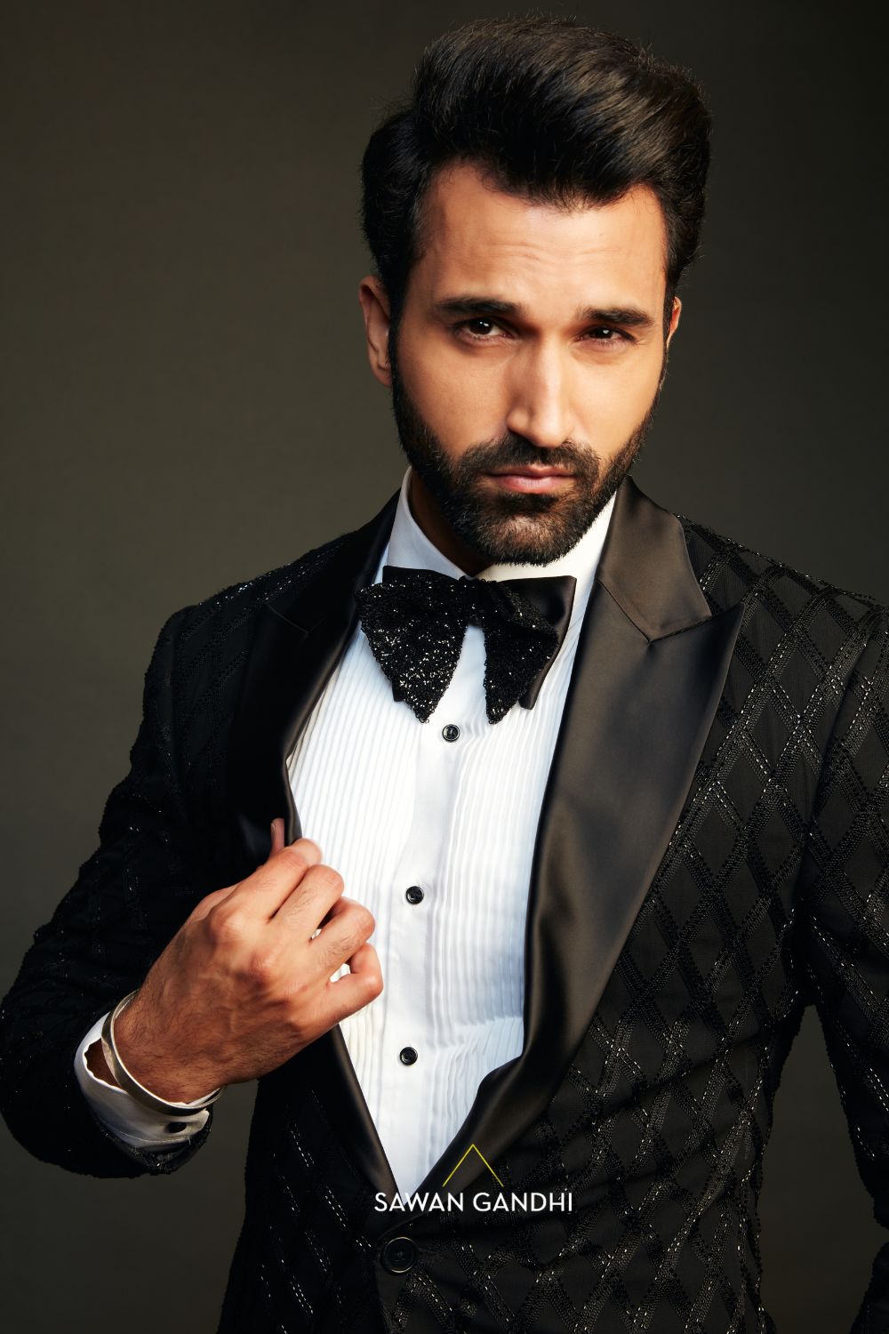Gurfateh singh pirzada in Black tuxedo with thread and cutdana work