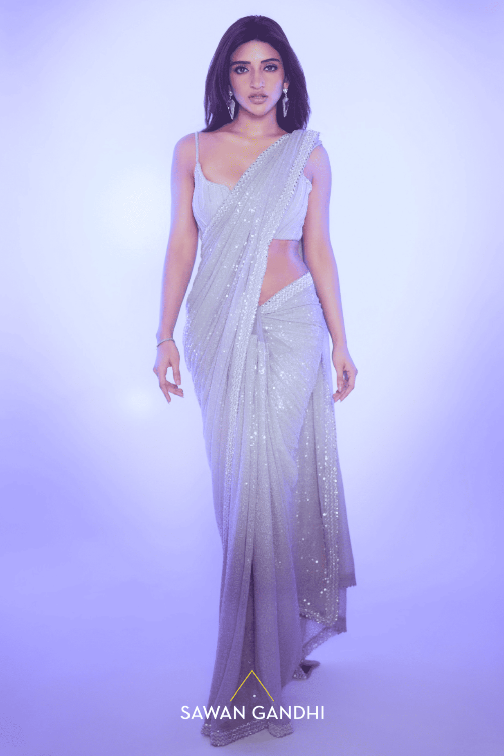 Grey to lilac ombre paani sequins saree paired with lilac cutdana and sequins blouse and a petticoatCOLOUR:- Grey and Lilac Fabric:- GeorgetteNo of pcs:- 3