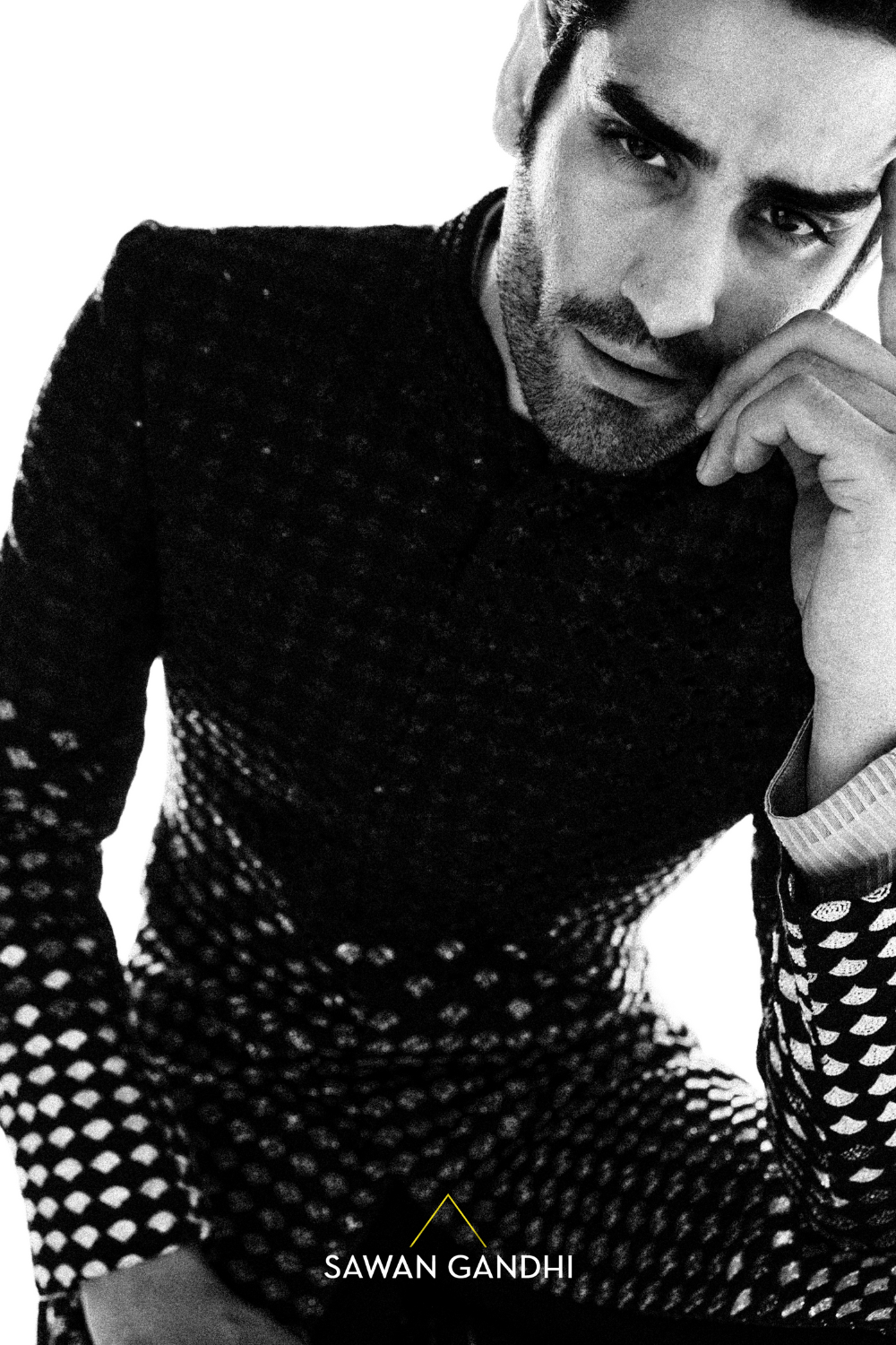 Black velvet sherwani with cutdana ombre work from black to silver paired with black oants