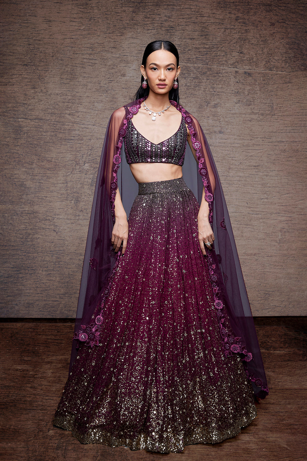 Grey to wine ombre lehenga
