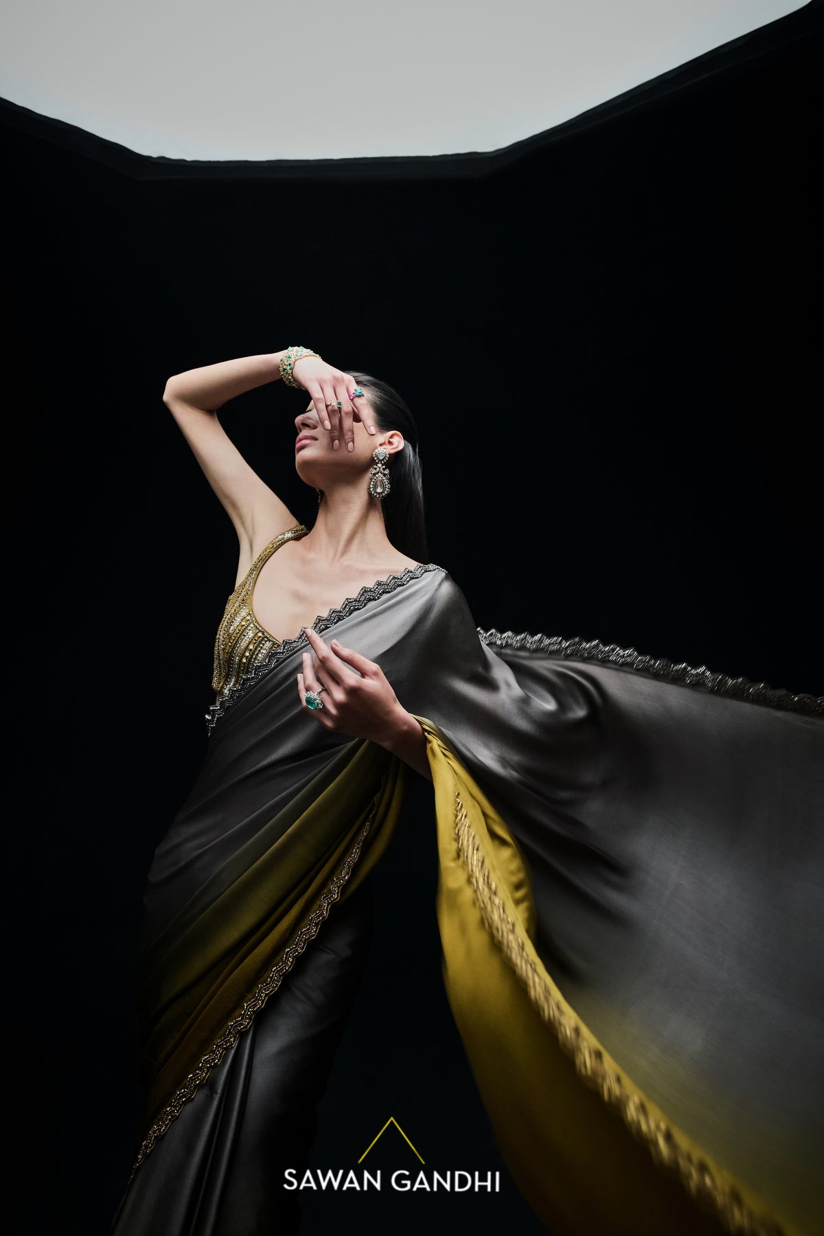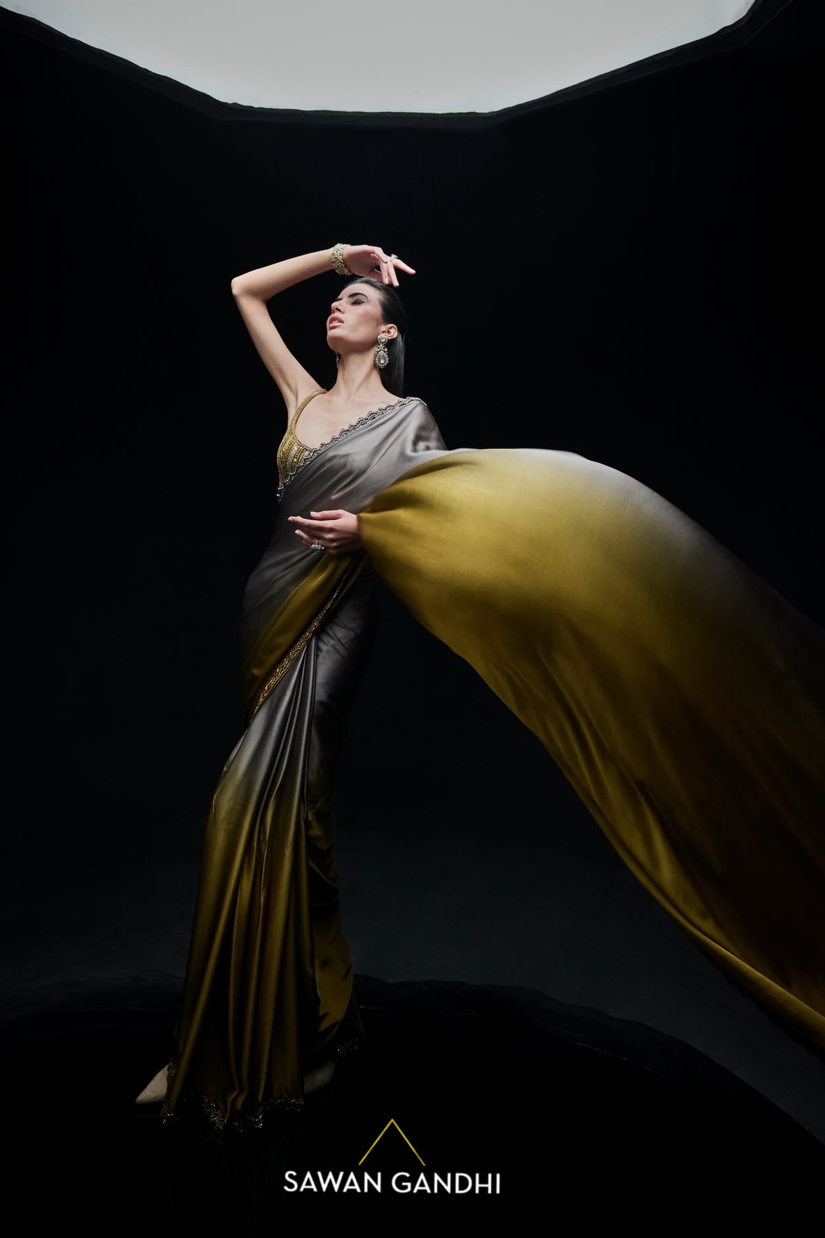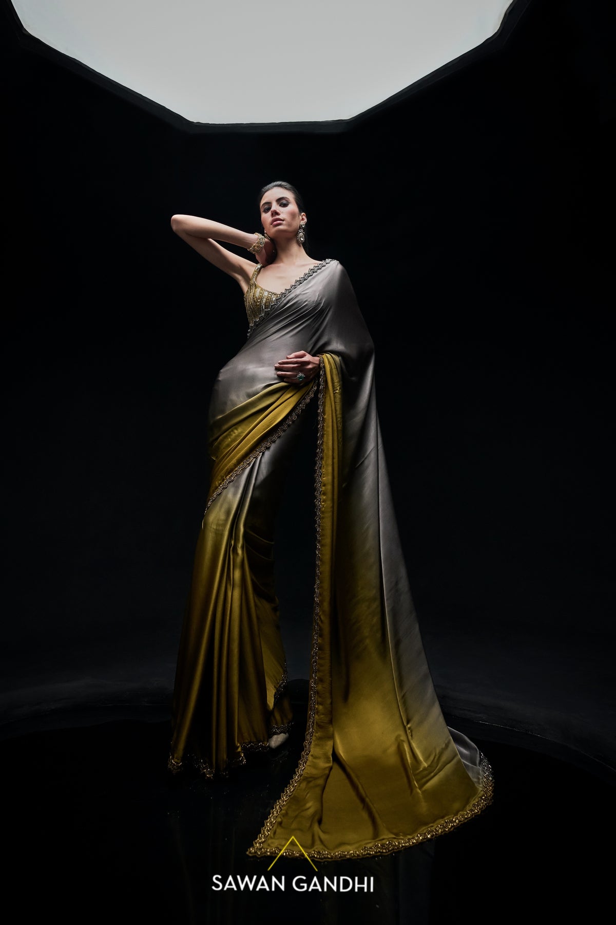 Gold to grey ombré saree
