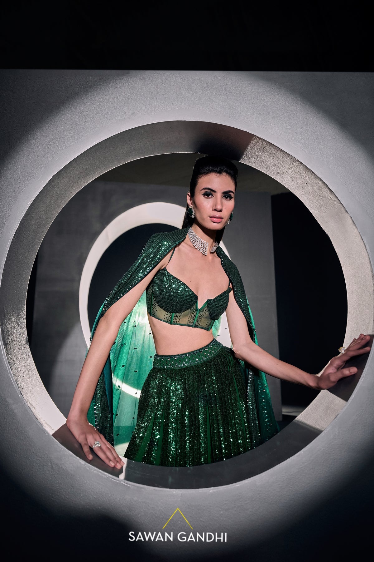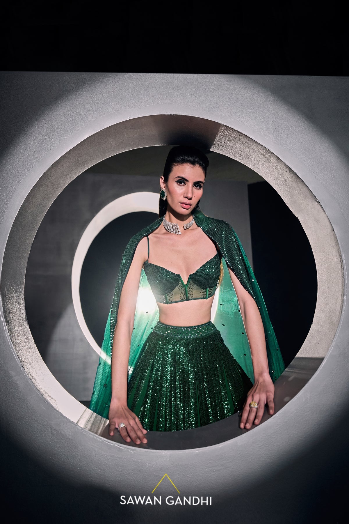 Green sequins lehenga