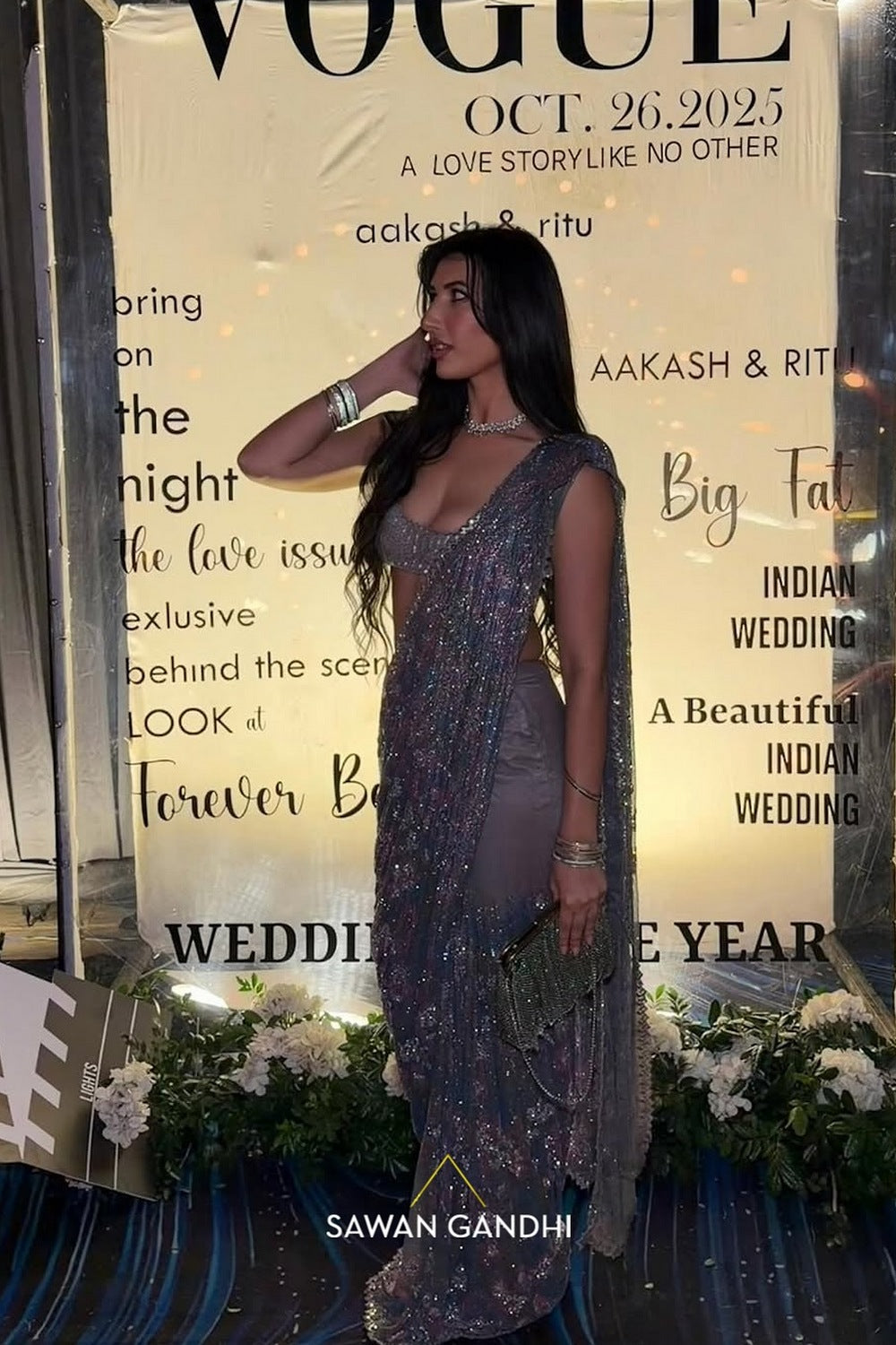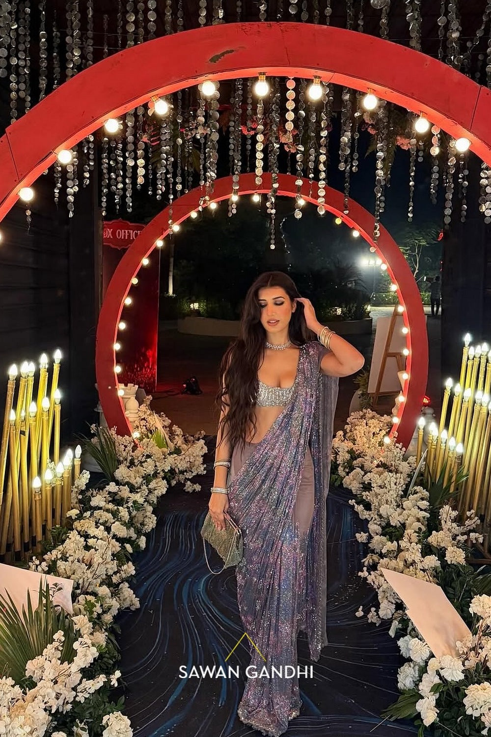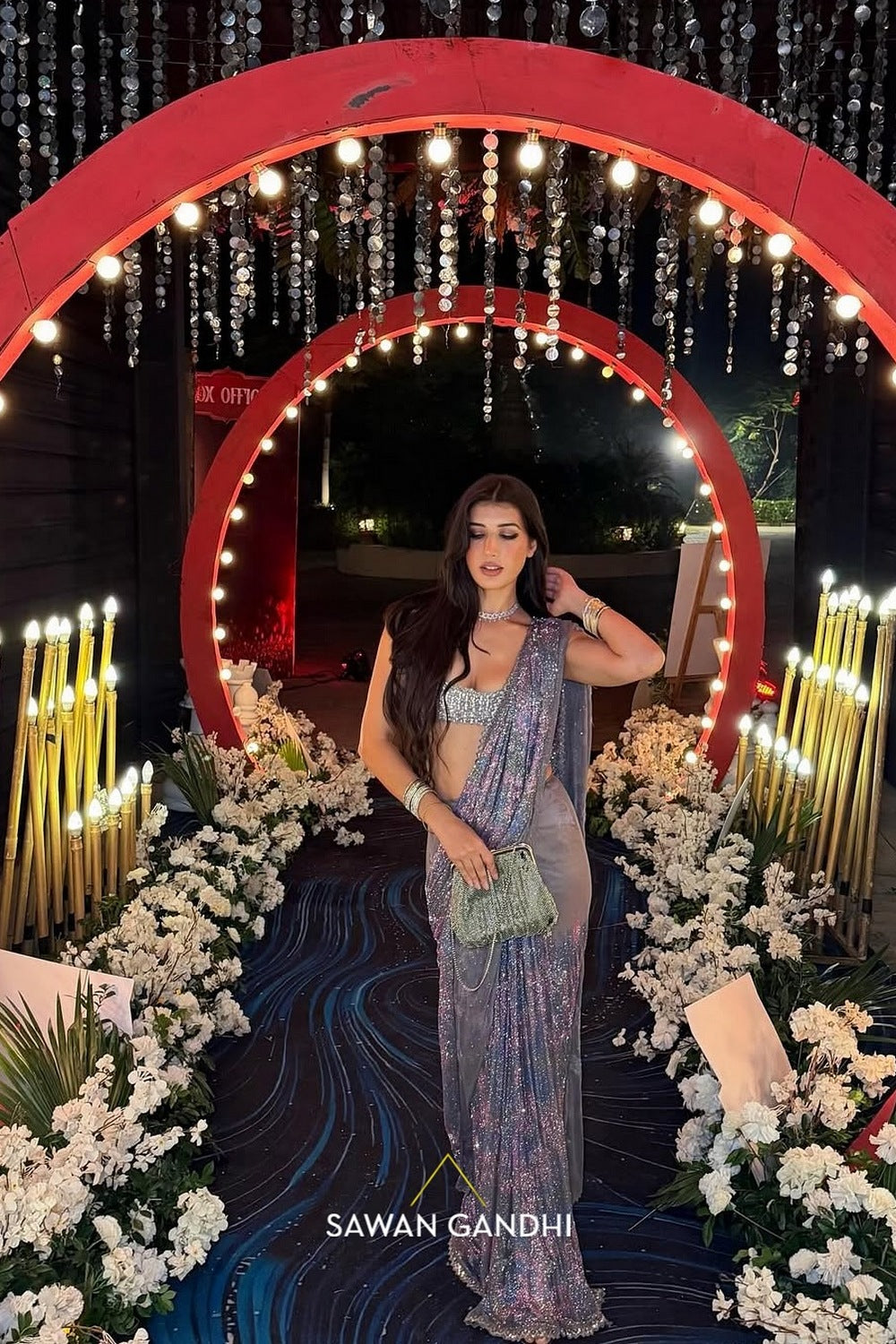 Multicolour Swarovski Saree, a perfect blend of elegance and modernity. It is paired with sequins and Kashti work blouse and a matching petticoat.