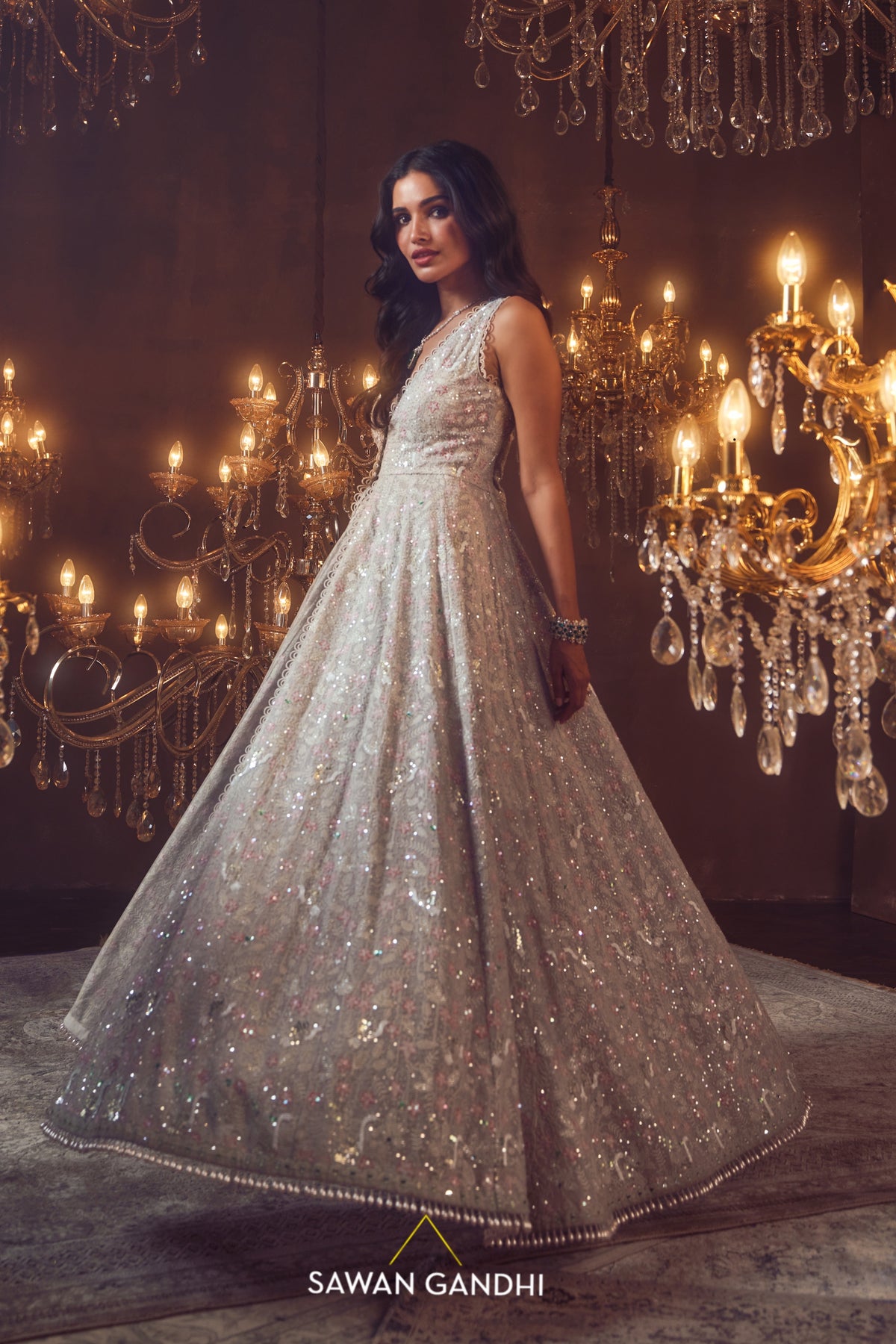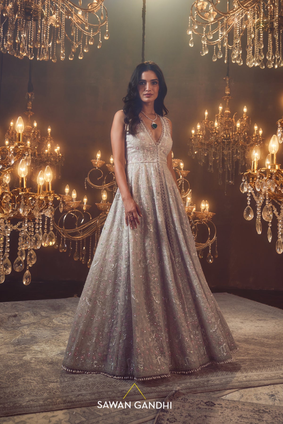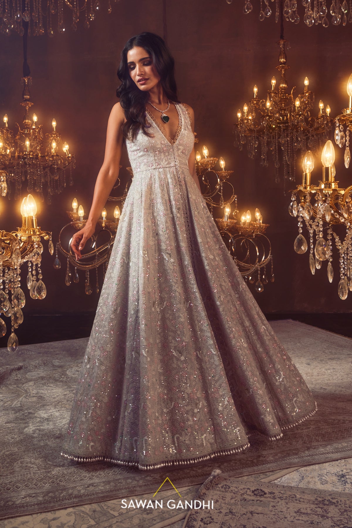 Smoke grey swan threadwork cape with sequins and cutdana embroidery all over paired with grey sequins pants